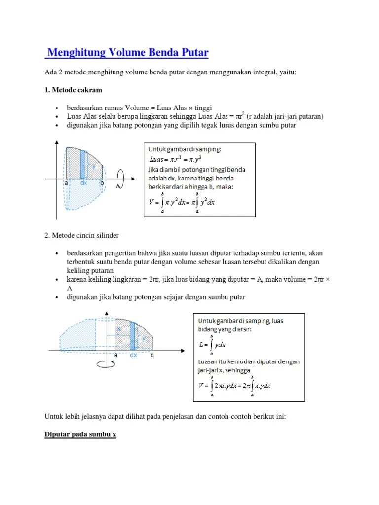 Xiiditag aplikasi integral dalam menghitung volume, contoh soal dan .