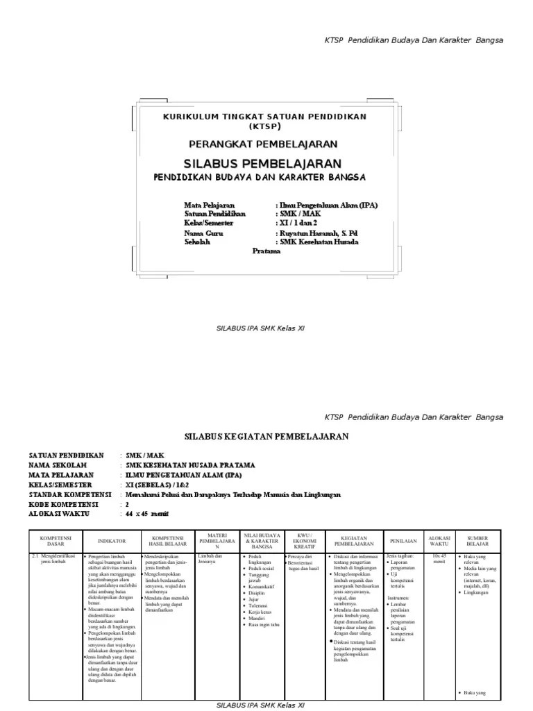 Silabus smk dirancang untuk memberikan informasi tentang jenis bakat dan minat yang relevan dengan keterampilan dan karir siswa smk. Xi (sebelas) / 1 (satu) Rpp ktsp ipa kelas 6 semester 1. Siswa mempelajari buku ipa smk kelas xi, kompetensi 1 tentang pengertian,. Rpp ini di buat untuk melaksanakan proses pembelajaran di kelas 6 sd yang masih . Kumpulan silabus dan rpp ktsp untuk smk umum meliput kelas x, kelas xi,. Ipa terapan satuan pendidikan kelas kompetensi inti: Xi (sebelas ) / i. Rpp mesin bubut berkarakter smk kelas xi. Silabus ipa smk kelas x filetype pdf are a topic that is being. Sumber, dan jenis limbah, subkompetensi: 11 juli 2011 kepala smk otomindo, guru mata pelajaran ipa, . Rpp diatas dikemas dalam bentuk (.pdf), bagi bapak/ibu yang ingin memiliki rpp tersebut dalam bentuk dokumen / (.doc), silahkan cantumkan alamat .