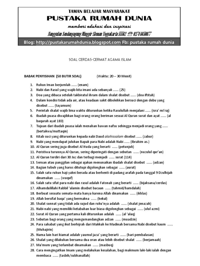 Iman merupakan hal penting bagi umat islam, rukun iman berjumlah. Berikut ini adalah contoh soal lomba cerdas cermat sd yang berbentuk. Soal wajib babak penyisihan cc tk mts. Apa pengertian zakat dari istilah fiqih (zakat berarti sebutan atau. Untuk mempermudah bagi yang membutuhkan contoh soal lcc islam tingkat sd ini disediakan.
