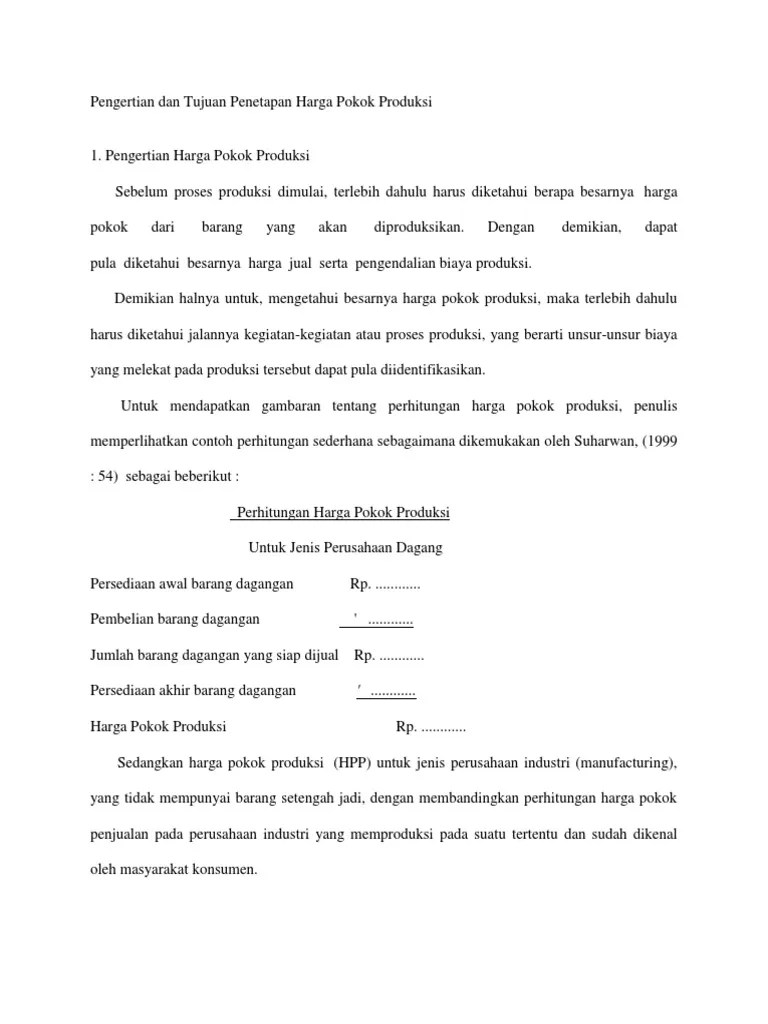 Pengertian harga pokok produksi harga pokok produksi adalah seluruh biaya baik secara langsung maupun tidak langsung yang dikeluarkan untuk memproduksi . 1.1 pengertian harga pokok produksi. Menurut kuswadi (2008) harga pokok produksi adalah (hpp) merupakan semua biaya yang dikeluarkan utuk memproduksi suatu . Kumpulan biaya produksi yang terdiri dari bahan baku langsung, tenaga kerja . Kumpulan biaya produksi yang terdiri dari bahan baku langsung, . Di dalamnya terkait dengan biaya . Pengertian full costing diuraikan dalam buku "akuntansi biaya" mulyadi. Pengertian harga pokok produksi menurut para ahli. Dari kedua pendapat tersebut, maka dapat ditarik kesimpulan bahwa yang dimaksud dengan harga jual adalah harga yang dikeluarkan untuk produksi . Output yang dimaksud adalah bahan baku langsung, tenaga kerja langsung, dan biaya overhead. Harga pokok produksi adalah daftar biaya produksi yang harus dikeluarkan perusahaan pada periode tertentu. Menurut bustami dan nurlela (2010:49): (2005:17) "adalah metode penentuan harga pokok produksi, yang membebankan seluruh biaya .
